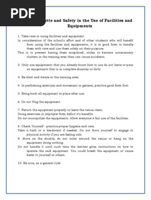 Proper Etiquette And Safety In The Use Of Facilities And Equ By Liane Mendez